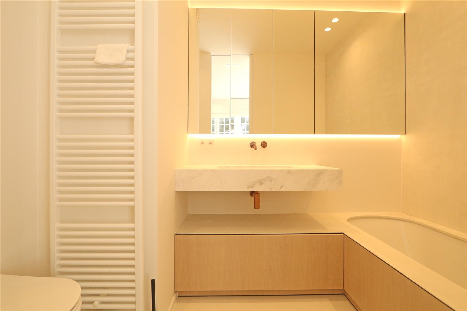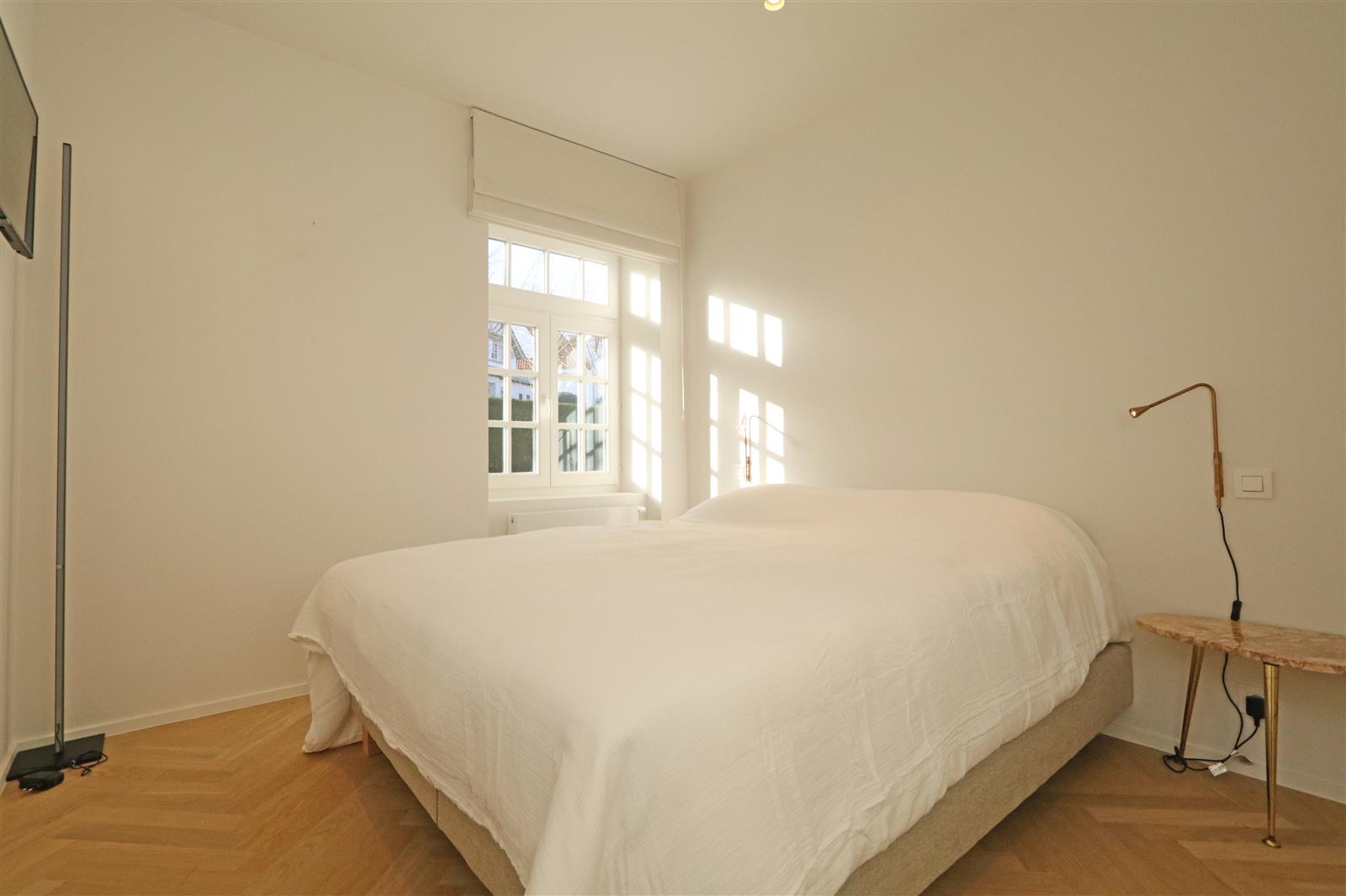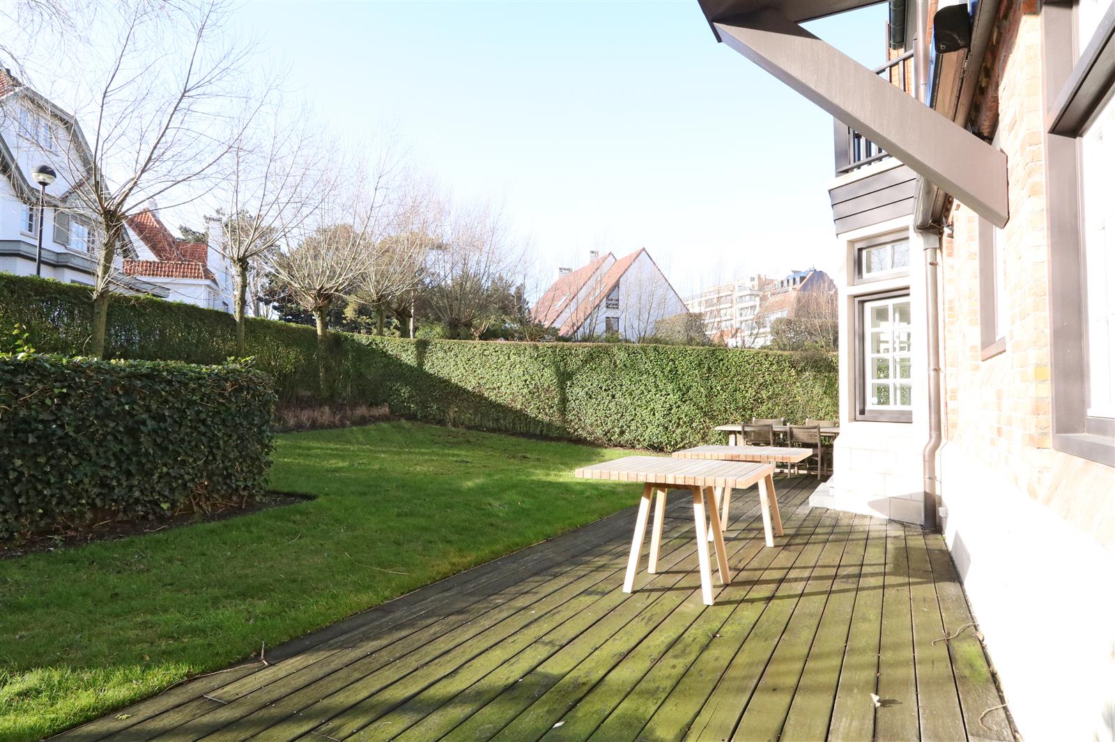 Luxueus appartement in een unieke residentie, rustig gelegen en vlakbij het centrum en de Zeedijk. Zuidgerichte tuin en terras, 3 slaapkamers, aangenaam salon, staanplaats in het gebouw.