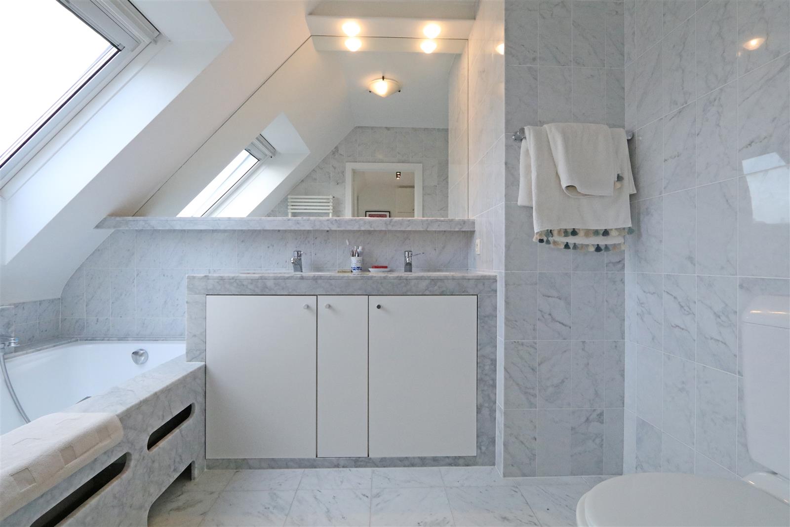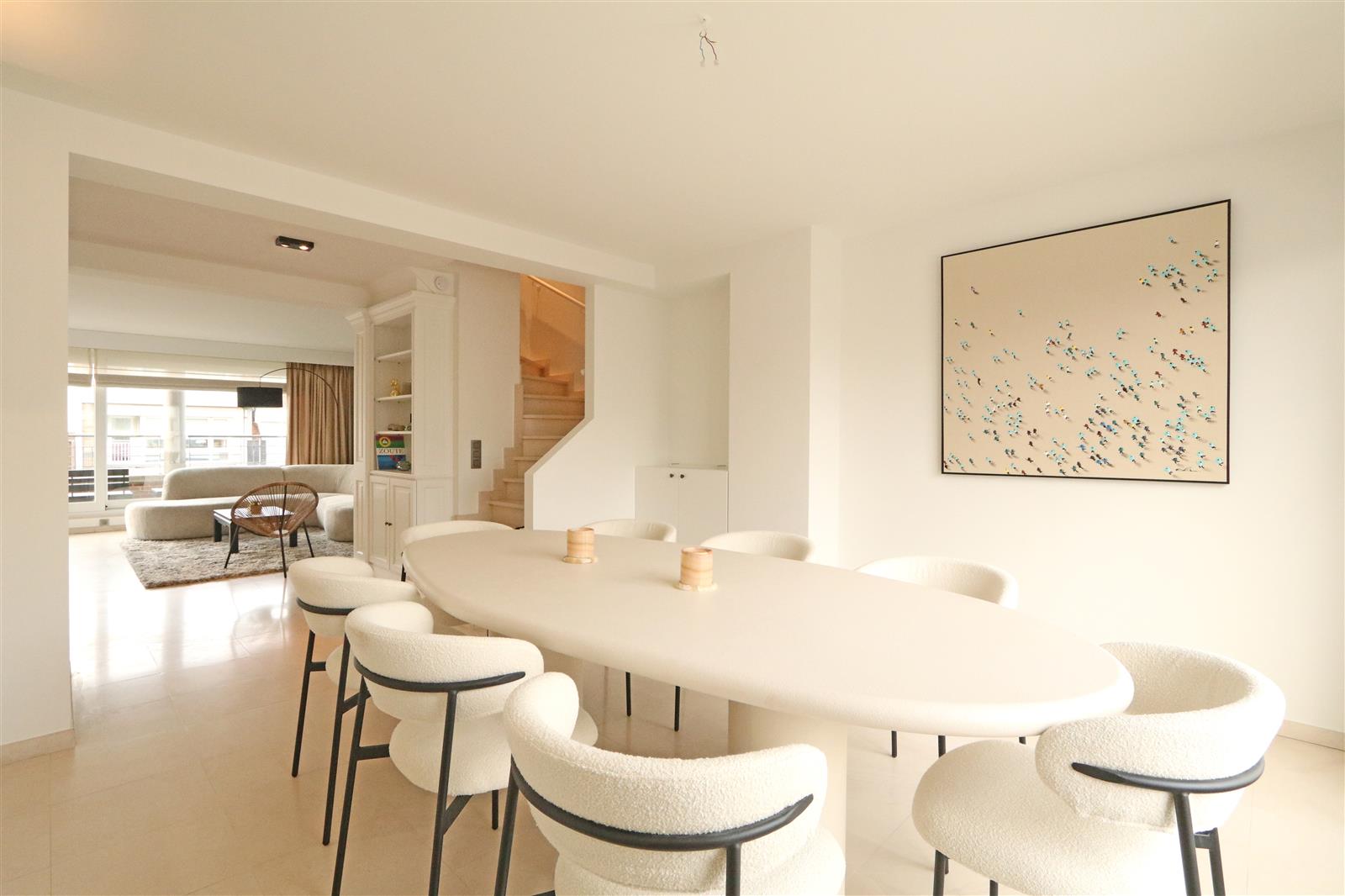 Cet appartement duplex spacieux situé sur la Van Bunnenlaan offre une expérience de vie agréable avec deux grandes terrasses. Doté de trois chambres, chacune avec sa propre salle de bain, le confort et l'intimité sont garantis pour tous les résidents. De plus, l'appartement dispose d'une double place de parking dans la résidence.