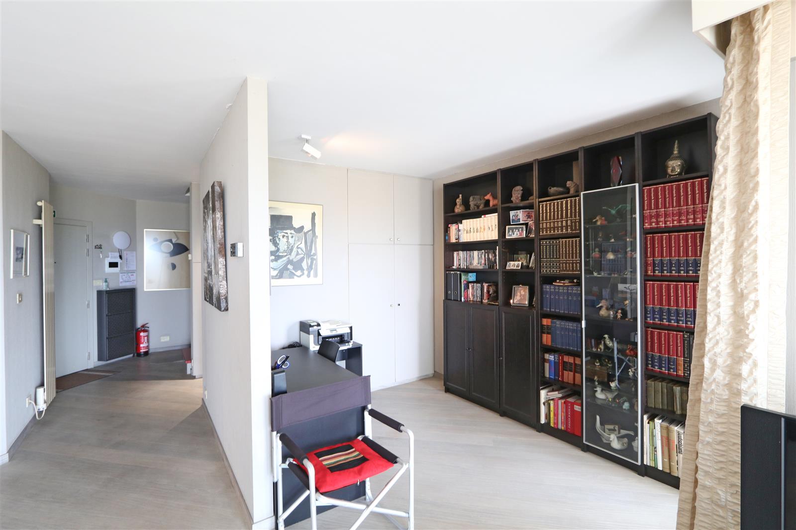 Duplex appartement op de wandeldijk met ruime slaapkamer, slaaphoek in de leefruimte en aparte studio op de 5de verdieping met douchekamer. De ruime terrassen met veel zon en zeezicht maken dit appartement een echte topper. Garagebox inbegrepen.